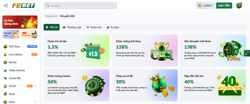 Keno FEBET thường xuyên triển khai các chương trình ưu đãi độc quyền như: