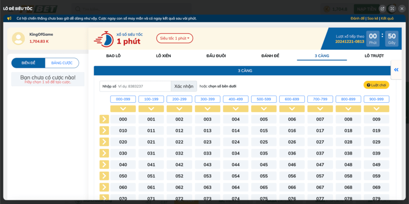 Người chơi cần dự đoán chính xác ba con số cuối trong kết quả xổ số. Dù mức độ khó cao hơn, nhưng phần thưởng mà lô 3 càng mang lại sẽ rất hấp dẫn và xứng đáng.